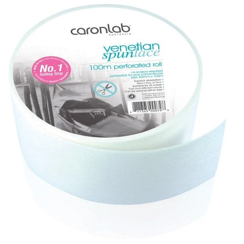 Made in Italy exclusively for Caronlab Australia, Venetian Spun Lace strips & rolls combines the durability of a non woven strip with the comfort of cotton calico. The result is a super absorbent, soft yet strong strip that sticks to wax immediately for fast and efficient results. Can be used on both sides, saving you time & money. In a first for wax strips, Venetian Spun Lace is also available in a convenient 100m perforated roll. Requiring no cutting, the perforated rolls are extremely quick and convenient to use. Simply separate individual strips from the roll on the perforation!