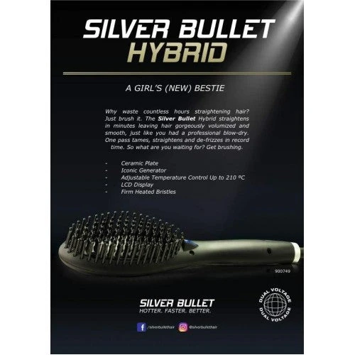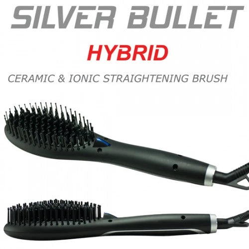 One pass of the Silver Bullet Hybrid straightens and de-frizzes in record time. A professional quality straightening brush with a ceramic plate and separate ionic generator, your guarantee to a frizz-free result! So what are you waiting for? Get brushing.